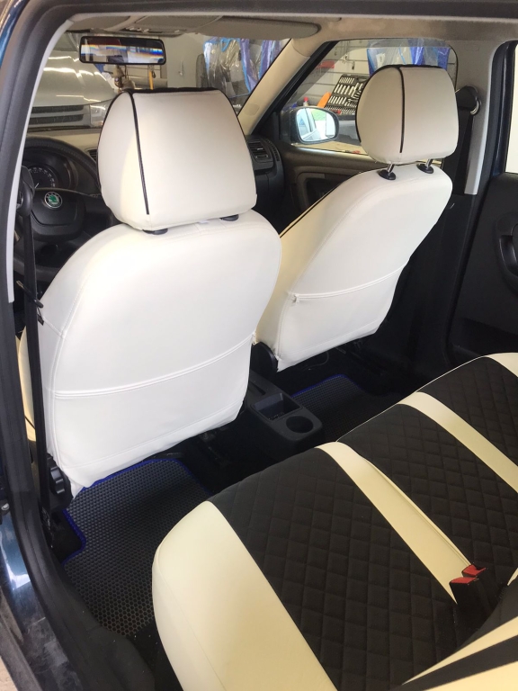 * Отличительная особенность от Fabia спорт по передним креслам. У варианта спорт верхняя часть спинок с "ушками".